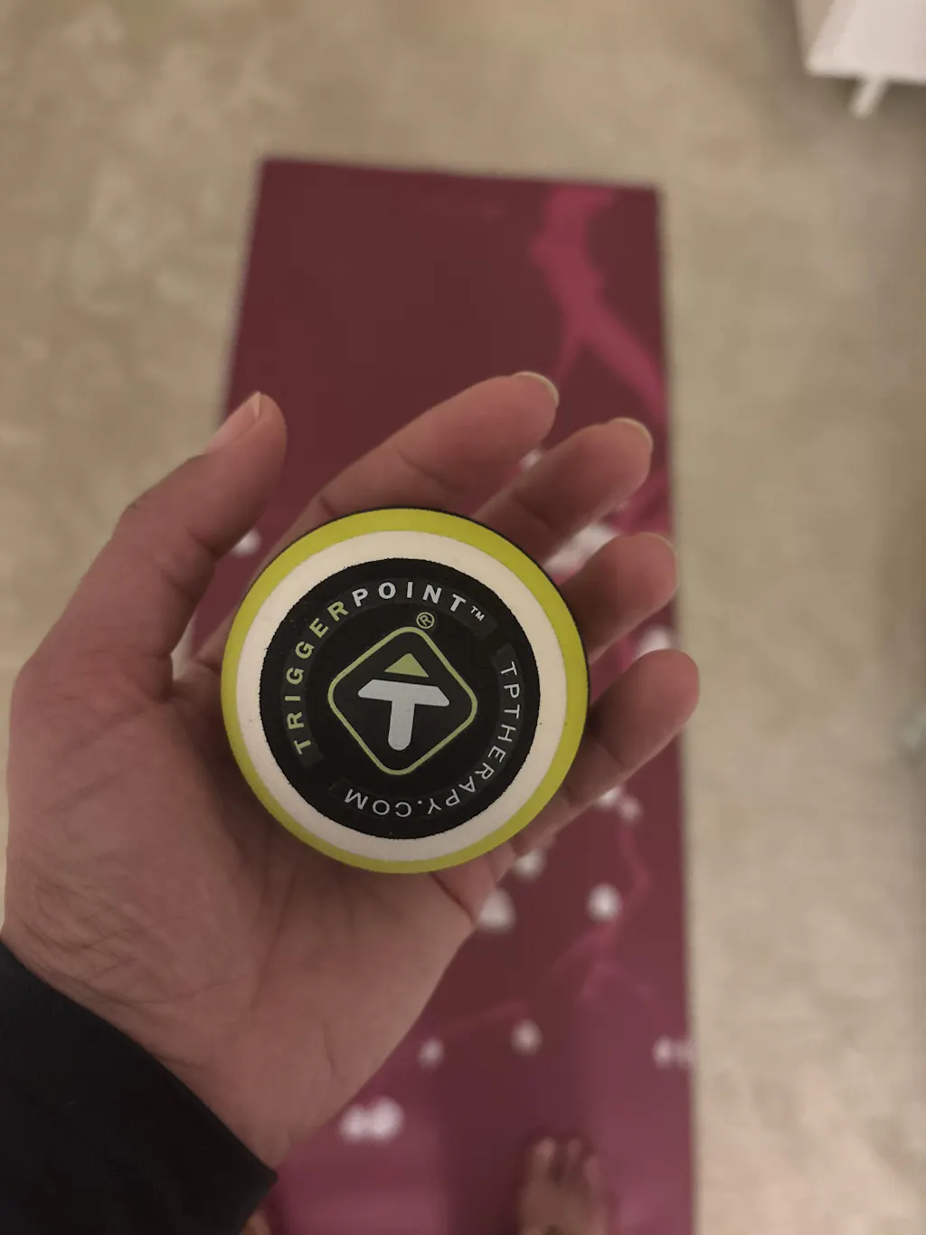 The MB1 massage ball is one of TriggerPoint's most popular items, a self-massage tool whose accolades are the result of its simple design and premium construction. Crafted from premium foam, the MB1 massage ball features a unique layered construction made up of different densities, designed to help manipulate soft tissue and fascia by breaking up adhesions and stimulating blood flow and oxygenation to enhance recovery and ease discomfort. The unique EVA foam surface is quite dense, yet has the ability to compress depending on how the user interacts with it, making it a versatile tool that lets you customize the amount of pressure you're aiming to employ on key muscles. Its compact size (2.6 inches, or 6.5 cm, in diameter) makes it ideal for targeting small muscles, such as in the feet, hands, hips, glutes, and more. It's also an ideal tool for targeting hard-to-reach and oft-overlooked muscles like the piriformis and psoas. Its compact size also makes the MB1 an ideal travel companion, easily fitting into a gym bag, purse, or backpack, so you can use it anytime, anywhere.