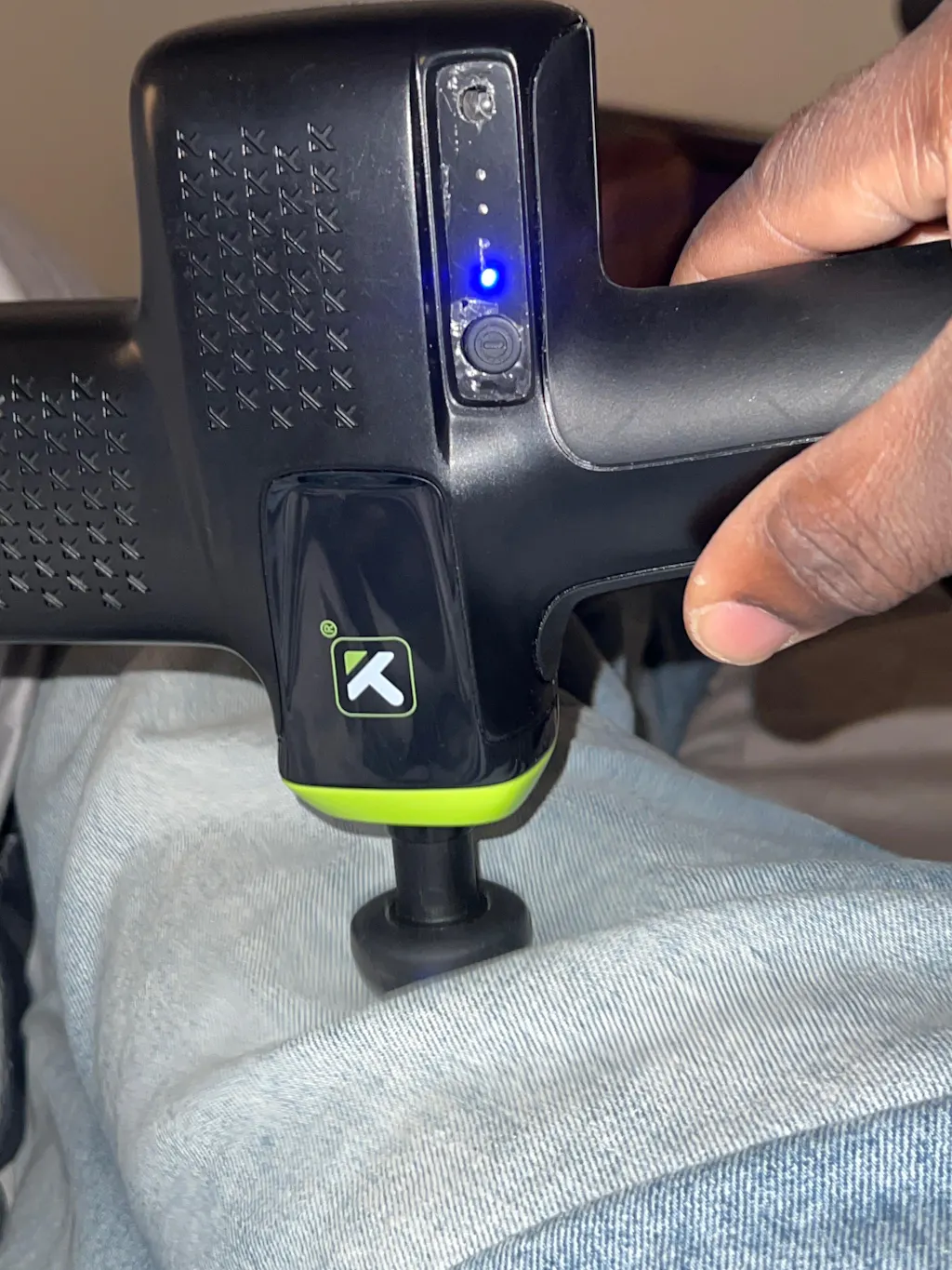 Move better and recover faster with this 4-speed, controllable percussion massage gun that helps increase blood flow, hydrate muscle tissue, and improve the body's performance both pre- and post-workout.